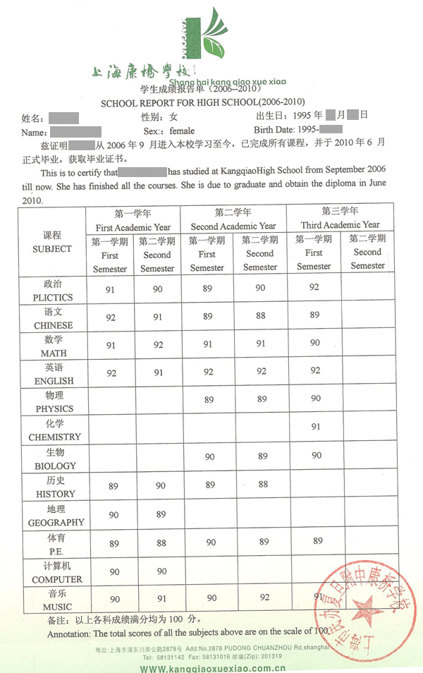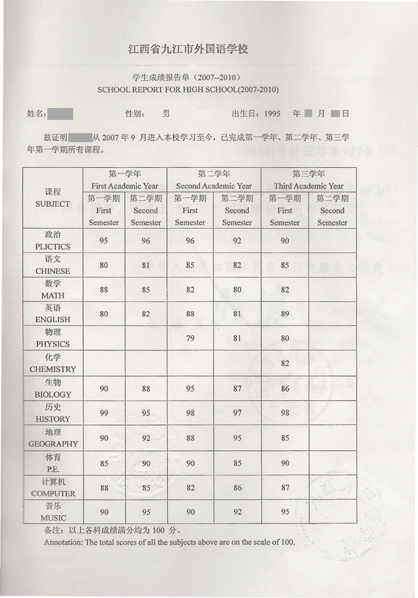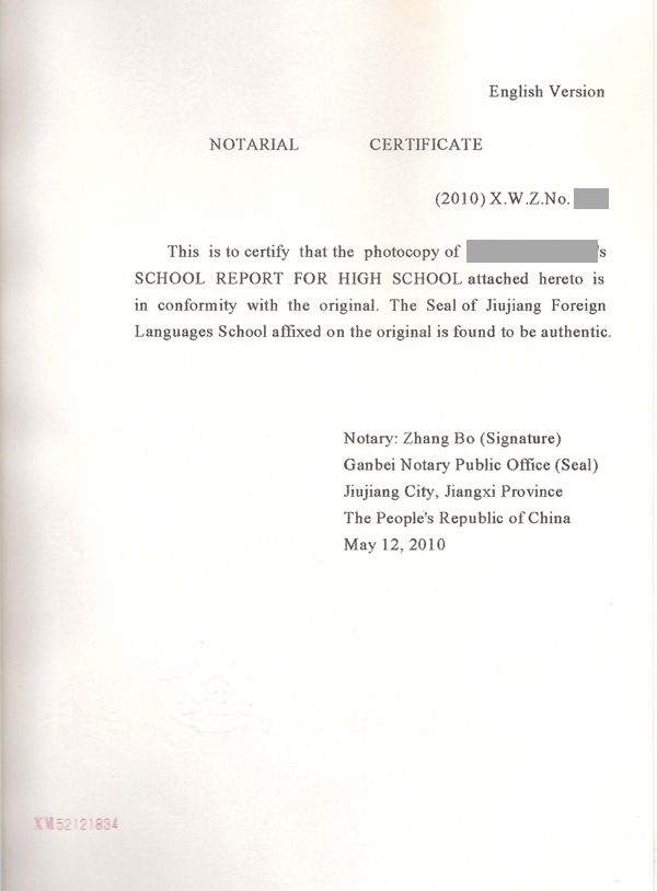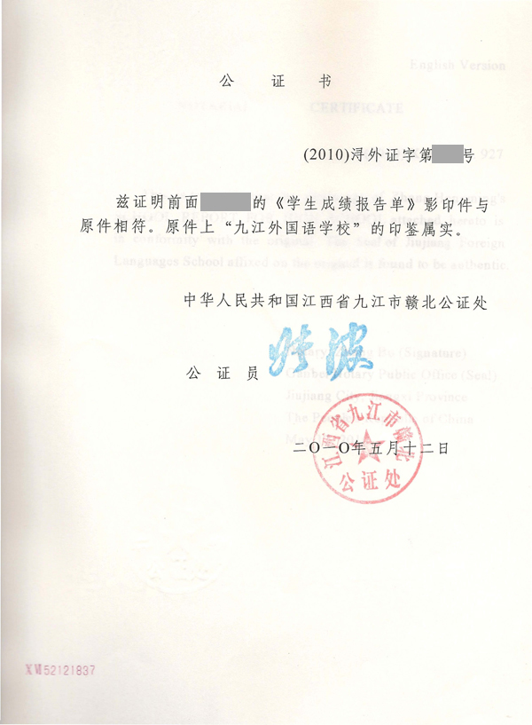 3、初中在讀成績公證書原件; [在讀成績、在讀成績公證書、英文]