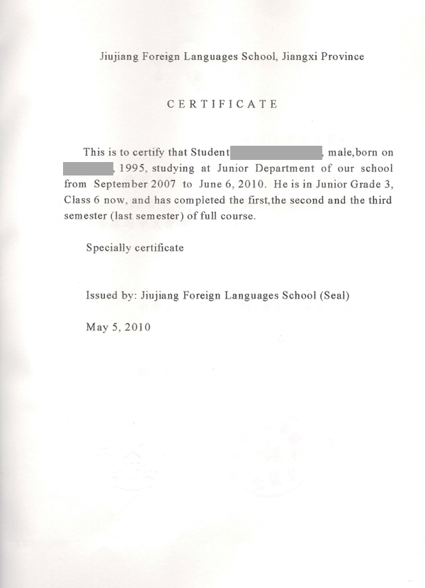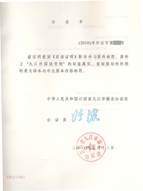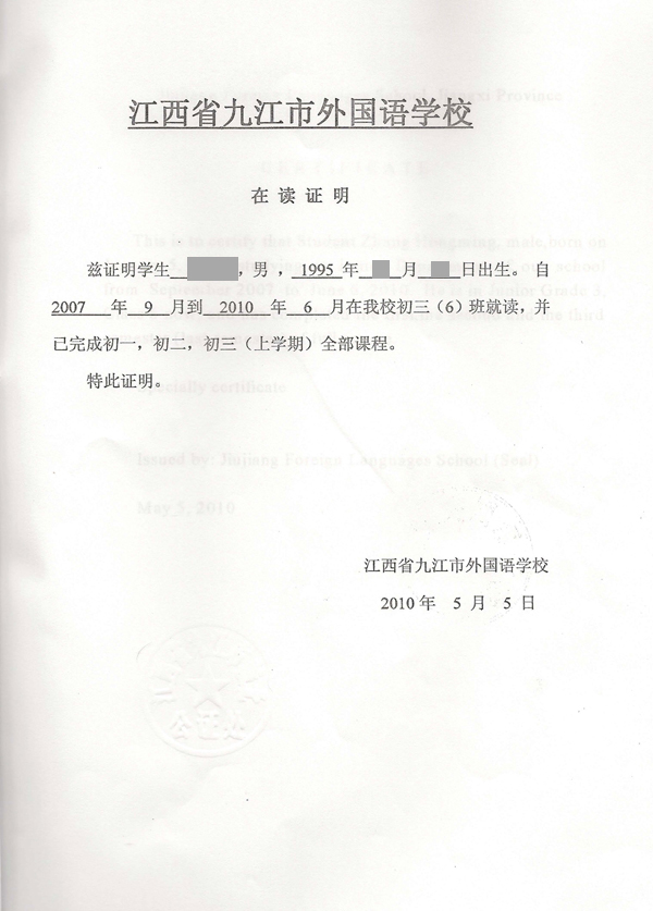 2、初中在讀證明公證書原件; [在讀證明、英文、在讀證明公證件、英文]