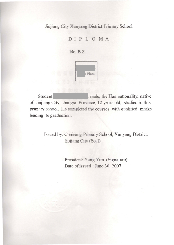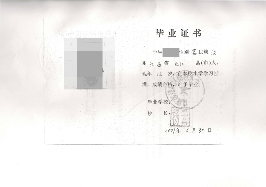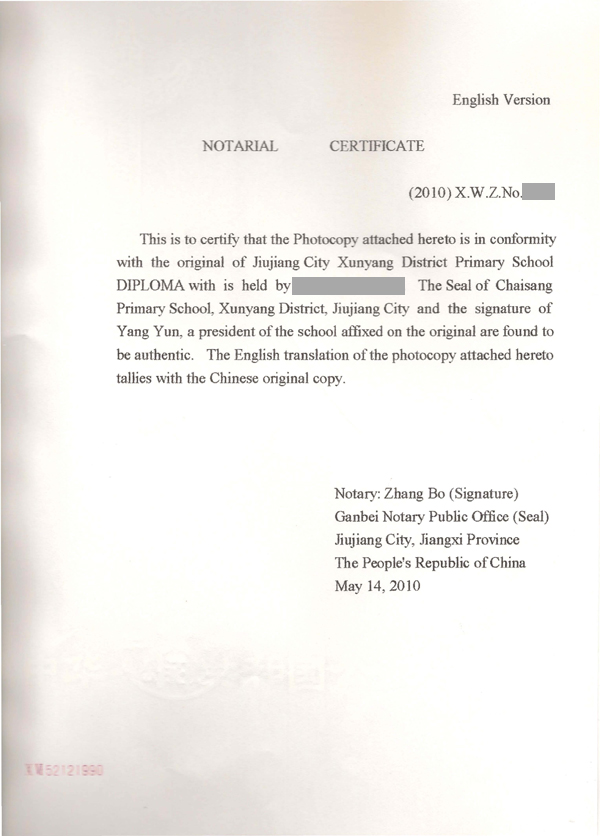 4、小學(xué)畢業(yè)證公證書原件。 [小學(xué)畢業(yè)證、英文、小學(xué)畢業(yè)證公證書、英文]